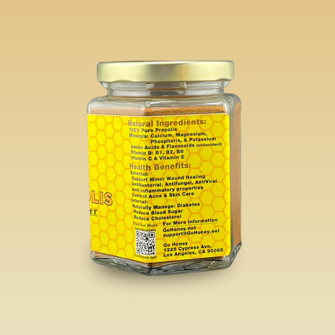 Strengthen your immune defenses and protect your cells with pure organic Bee Propolis Powder. Naturally rich in flavonoids and antioxidants, this slightly bitter, woody-tasting powder supports oral, throat, and skin health from the inside out when used daily.